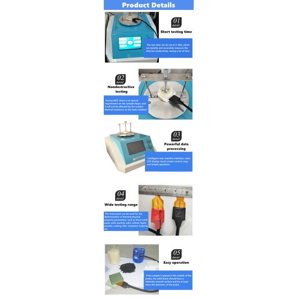 | measuring physical properties | Thermal conductivity and thermal diffusivity are obtained directly. | The thermal diffusivity and specific heat are obtained directly, and the thermal conductivity is calculated by the input sample density value. | Thermal conductivity is obtained directly | Thermal conductivity is obtained directly |